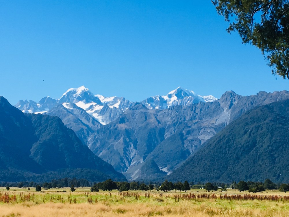 Also machten wir uns auf den Weg zum Lake Matheson, einem wunderschönen Spiegelsee bei Mount Cook (höchster Berg Neuseelands) und Mount Tasman. Gerne hätten wir uns auch den Fox Glacier aus der Nähe angeschaut, aber leider hat der Fluss vor einigen Tagen so stark gewütet, dass der Weg dahin zur Zeit unpassierbar ist…
