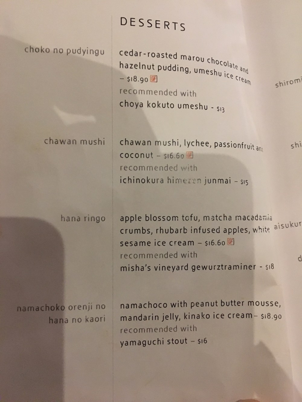 Zur Feier des Tages gab es einen feines Dinner beim Japaner mit geheimnisvollen Dessertnamen. Selbstverständlich entschied sich Andi für das geheimnisvollste…